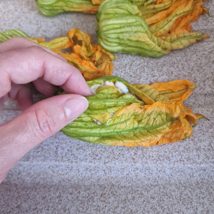 Fiori di Zucca Ripieni di Ricotta e Gamberetti al profumo di Limone