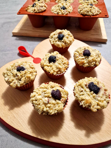 Il loro impasto morbido al profumo di limone è ricco di fresche ciliegie, ricoperti infine da una crosta croccante, che altro non è che un fantastico crumble di mandorle.